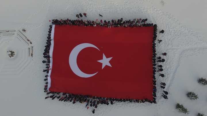 Kocaeli Büyükşehir Belediyesi’nin Aytepe’deki Diriliş Kampı farklı etkinliklere sahne oluyor. Hafta sonu Aytepe Park ve Diriliş 2 Kampı’nda kalan izciler, bin 300 rakımda kar üzerinde yaklaşık 2 kilometre yürüdü. Ellerinde bayraklarla kamplardan çıkarak Diriliş 2’ye yürüyen izciler, buradaki alanda kar üzerinde 22,5mx15 m ebadında dev Türk Bayrağı açtı. Türk Bayrağı beyaz kar örtüsü üzerinde kırmızı rengiyle hoş bir görüntü oluşturdu.