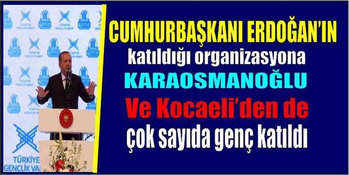Türk Dünyası Belediyeler Birliği (TDBB) ve Kocaeli Büyükşehir Belediye Başkanı İbrahim Karaosmanoğlu, Türkiye Gençlik Vakfı (TÜGVA) 4. Gençlik Buluşması programına katıldı. Cumhurbaşkanı Recep Tayyip Erdoğan’ın katılarak bir konuşma yaptığı Abdi İpekçi Spor Salonunu binlerce genç doldurdu. Erdoğan konuşmasında, “Ülkemizin demokraside, ekonomide, yatırımlarda bugünkü seviyesine gelmesi elbette kolay olmadı. Davamızın büyüklerinden devraldığımız sancağı, daha yükseklere çıkarmak, Türkiye'yi muasır medeniyetler seviyesinin de üzerine taşımak için çetin mücadeleler verdik. Bugün ekonomide, sanayide, istihdamda, gençlerine sunduğu imkânlarda geçmiş dönemle karşılaştırılamayacak kadar müreffeh bir ülke var” dedi.