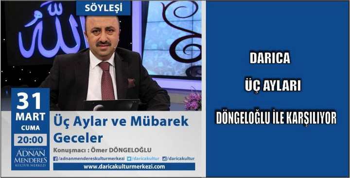 Televizyonlarda yaptığı dinî programlarla milyonlarca hayran kitlesi edinen Döngeloğlu, mübarek üç ayların başlangıcında, Darıca Adnan Menderes Kültür Merkezi’nde “Üç Aylar ve Mübarek Geceler” konulu söyleşisi ile Darıcalılarla buluşacak. 31 Mart 2017 Cuma akşamı saat 20:00’da başlayacak programda Döngeloğlu izleyicilerin merak ettiği konulara açıklık getirecek.