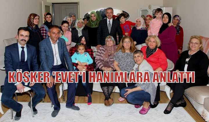Ev sahibesi Günay Demirci’nin organizasyonunda düzenlenen ev toplantısına davet üzerine katılan Gebze Belediye Başkanı Adnan Köşker, belediye çalışmaları ve hizmetleri hakkında bilgi verdi. Toplantıya katılan hanımların sorularını da cevaplandıran Başkan Köşker, 16 Nisan’da gerçekleştirilecek halk oylamasında Türkiye’nin onayına sunulacak anayasa değişliklerine ilişkin bilgi verdi. Meselenin sadece anayasa oylamasından ibaret olmadığını meselenin memleket meselesi olduğunu vurgulayan Gebze Belediye Başkanı Adnan Köşker, “Hanımlar toplumda çok önemli bir yere sahip. Toplumu şekillendiren siz değerli hanımlarsınız. Bu sebeple sizlerin fikirleri ve kararları bizler için çok önemli. Yarınların teminatı gençlerimizin annelerinin kararlarının bu sebeple evet olması bizler için çok değerli. İnanıyorum ki siz değerli hanım kardeşlerim de, halk oylamasında daha güçlü bir Türkiye için güçlü bir şekilde tercih mührünü ‘evet’e vuracaksınız” dedi. Ev sahibesi Günay Demirci ve diğer hanımlar Başkan Köşker’e katılımından ötürü teşekkür etti.
