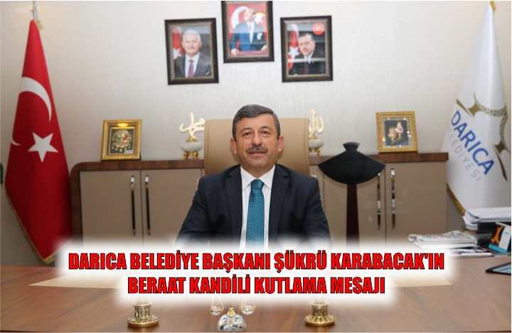 Başkan Karabacak, “Mukaddes gecelerden biri olan Berat kandiline bir kere daha kavuşmuş bulunuyoruz. Af ve bağışlanma gecesi olan bu mübarek geceyi idrak etmenin sevinç ve mutluluğunu yaşarken bu mübarek gecenin manevi duyguları içerisinde birbirimize sevgi ve hoşgörü ile yaklaşarak dargınlık ve kırgınlıklara son vermeli birlik ve beraberliğimizi pekiştirmeliyiz. Bu duygu ve düşünceler ile tüm Darıca halkının ve İslam Aleminin mübarek Berat Kandilini kutlar, ülkemize ve tüm insanlık alemine barış huzur ve mutluluk getirmesini dilerim” dedi