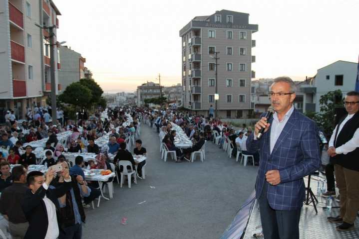Gebze Belediyesi’nin düzenlediği geleneksel iftar sofrası Cumartesi Beylikbağı, pazar günü ise Yavuz Selim ve Ulus Mahallesi’ni bir araya getirdi. Binlerce mahalle sakinini bir araya getiren, aynı sofra etrafında oruçlarını açmaya vesile olan Gebze Belediyesi geleneksel iftar programına; ev sahibi Gebze Belediye Başkanı Adnan Köşker, eşi Ragibe Köşker, belediye başkan yardımcıları Engin Güzel, Nilay Ayran, Sadık Albayrak, belediye meclis üyeleri, mahalle muhtarları ve mahalle sakinleri katıldı.