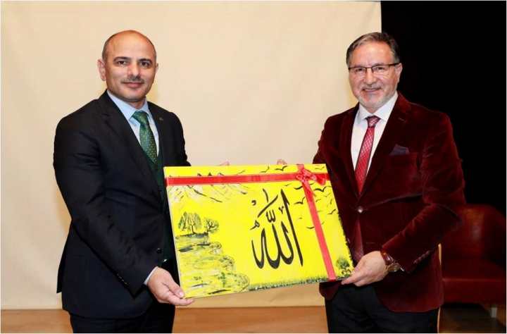 “İnsan” kelimesinin kökünde “unutan” ve “ünsiyet eden” olmak üzere iki anlamı olduğunu söyleyen Prof. Dr. Mustafa Karataş, bir araya geldiğinde hemen anlaşan, göz göze geldiğinde hemen frekansları tutan varlık olan insanın kâinatın bekçisi olduğunu söyledi. Okul Müdürü Zafer Pınar da katılım dolayısıyla teşekkür ederken, Başkan Şener Söğüt, Prof. Dr. Mustafa Karataş’a tablo hediye etti.