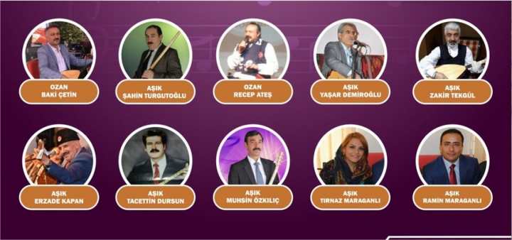 Ozan Baki Çetin, aşık Şahin Turgutoğlu, ozan Recep Ateş, aşık Yaşar Demiroğlu, aşık Zakir Tekgül, aşık Erzade Kapan, aşık Tacettin Dursun, aşık Muhsin Özkılıç, aşık Tırnaz Maraganlı ve aşık Ramin Maraganlı gibi ozan ve aşıkların atışacağı programda türküler ve birbirinden değerli eserlerde seslendirilecek.