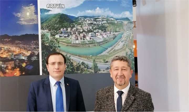 Turizm fuarında vali yardımcısı Hasan Hüsnü Türker tarafından Artvin’in doğal güzellikleri konusunda bilgilendirilen dağcı Şükür’e konu ile ilgili broşürler verildi.