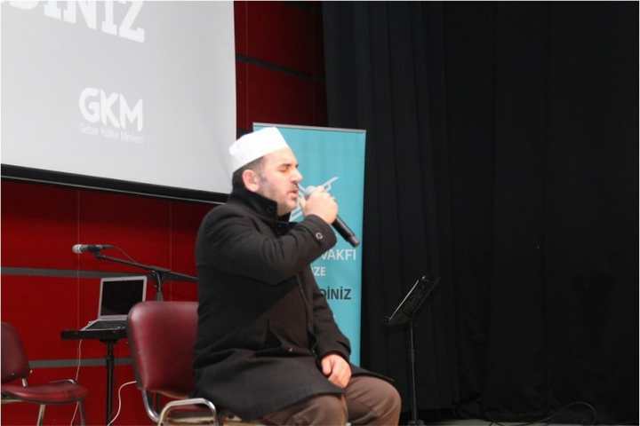 Yard. Doç. Dr. Oğuzhan Aydın, “Bir toprak parçasını vatan yapan üç şey vardır. Bu üç şeyin başında şehitlerimizin kanı vardır. Daha sonra alimin mürekkebi ve çalışanın alın teriyle bir toprak vatan olur. İşte bu Anadolu topraklarını bize vatan yapan Sultan Alpaslan ve onun askerleridir. Bu gün Anadolu’da ana vatandan getirdiklerimiz le yaşıyoruz” ifadelerini kullandı. Sanatçı Ömer Karaoğlu verdiği konserde şehitler için yazılan eserleri seslendirdi.