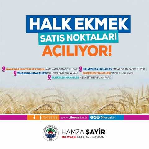 Meclisimiz tarafından alınan karar ile Büyükşehir Belediyemiz ve Kocaeli Fırıncılar odası ile yapılan protokol ile ilçede halk ekmek satışının başlayacağını müjdeleyen Dilovası Belediye Başkanı Hamza Şayir, “Sosyal Belediyeciliğin bir gereği olarak halkın ihtiyaç duyduğu noktalarda maddi durumu iyi olmayan vatandaşlarımızın daha uygun koşullarda ekmek alabilmesini sağlamak için yapılan protokol ile ilçemizde beş noktada halk ekmek noktaları kurulacaktır. İlçemizde dar gelirli vatandaşlarımıza avantaj sağlayacak olan halk ekmek satış büfeleri ilçemize şimdiden hayırlı olsun’ dedi.