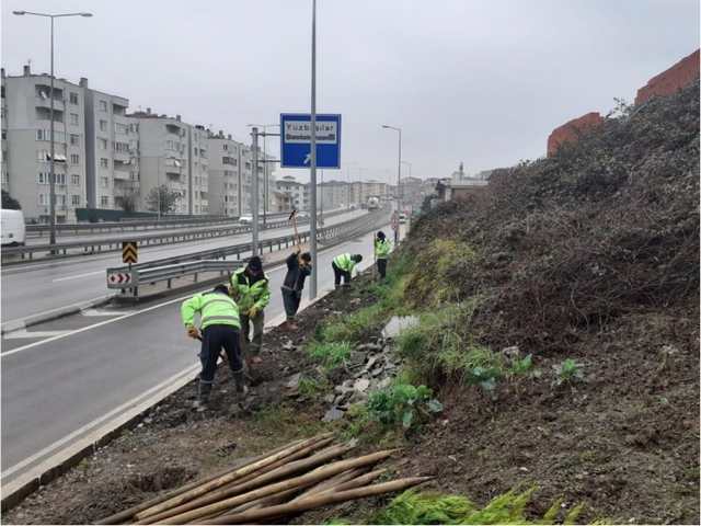 KAVŞAKLAR VE YOL KENARLARI YEŞİLLENDİRİLİYOR
