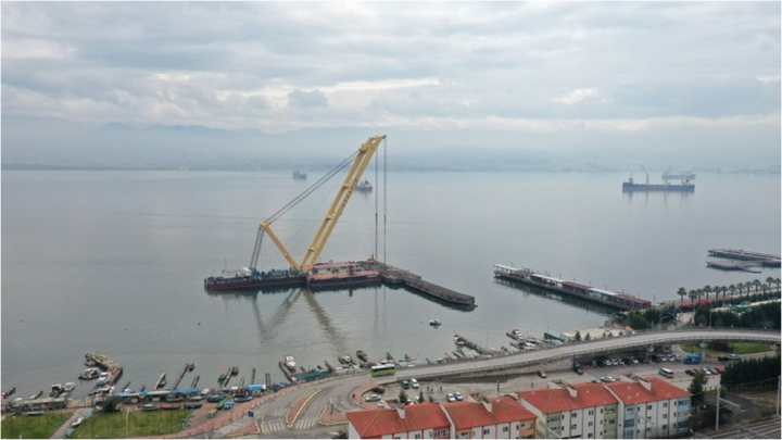 SEKA İskelesi, yüzer vinç ile yıkılıyor