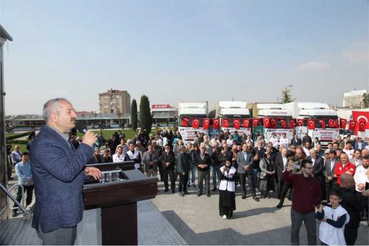 Gebze Belediye Başkanı Zinnur Büyükgöz yaptığı kısa selamlama konuşmasında, “Komşusu aç yatarken tok yatan bizden değildir. Veren el alan elden her zaman üstündür. Bunlar bir inancın, bir medeniyetin süzülmüş cümleleridir. Dolayısıyla bu tavsiyenin karşısında ne komşumuz aç iken yatabiliriz, ne de onlar huzursuzken kendimizi huzurlu hissedebiliriz. Bu gün İdlib’teki insanlar Çanakkale’de şehit olmuş, bu toprakları kanıyla sulamış dedelerin torunları. Biz her zaman mazlumun yanında olmuş bir milletiz ve olmak zorundayız” ifadelerini kullandı. Başkan Büyükgöz’ün konuşmasının ardından yardım TIR’ları dualar eşliğinde İdlib’e doğru yola çıktı.