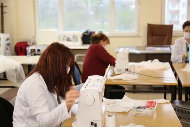 Gölcük Belediye Başkanı Ali Yıldırım Sezer, korucu maske üretiminin yapıldığı GÖLMEK Kurs Merkezi’ne giderek hem üretimi yerinde inceledi hem de gönüllü olarak maske dikimini gerçekleştiren öğretmenlere teşekkür etti. Başkan Sezer yaptığı konuşmada, “Şu an hep birlikte zorlu bir mücadele gerçekleştiriyoruz. Yaptığınız çalışmanın savaşta mermi taşımaktan hiç bir farkı yok. Ne varsa yine Anadolu kadınında var. Allah hepinizden razı olsun. Dayanışma, birlik ve beraberlik içinde bu zorlu süreci de atlatacağız” dedi.