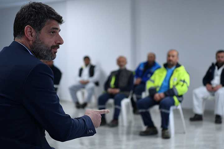 Başkan Kocaman “Sizler gece-gündüz ilçemizi karış karış dezenfekte ettiniz. Hakkınız ödenmez. Sizlerin sorunları ve isteklerini dinlemek önemlidir. Koronavirüs ile mücadeleye başladığımız günden itibaren Kartepemizin dört bir yanında dezenfekte işlemlerini gerçekleştiren çalışma arkadaşlarımızın koordinasyon toplantısına katıldık. Bu vesile ile tüm hemşehrilerimiz adına kendilerine gönülden teşekkür ediyorum” açıklamasında bulundu. Belediye Başkanı Kocaman, Covid-19 salgını ile mücadele ekiplerinin başında yer alan Belediye Başkan Yardımcısı Murat Balaban’dan bilgi aldı.