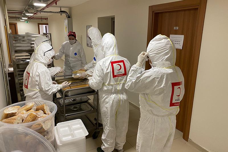 Türk Kızılay, koronavirüs ile mücadelede de üzerine düşen görevi yerine getiriyor. Yurt dışından gelen ve 42 il ve 63 noktada karantina altına alınan yaklaşık 20 bin kişiye üç öğün beslenme hizmeti vermeye devam ediyor. Toplum olarak daha fazla dayanışmaya ihtiyaç olduğunu belirten Kızılay Genel Başkanı Dr. Kerem Kınık, “Bizler Kızılay olarak bu olağanüstü dönemde tüm kaynaklarımızı ihtiyaç sahipleri için seferber ediyoruz. 8.111 gönüllü profesyonel ile seferberlik ilan ettik, sahada çalışmalarımız sürüyor. Son 2 haftadır gözlem altındaki vatandaşlarımıza Kızılay olarak yemek desteğimizi eksiksiz yerine getiriyoruz. 42 il, 63 noktada karantina altında olan toplam 19.993 vatandaşımıza 627 bin 481 öğün beslenme desteği sunuyoruz. Hepsine şifa ve sağlık dileklerimizi iletiyoruz.152 yıllık tarihimiz bize zor günleri atlatmada dayanışmanın önemini öğretti.” dedi. Kızılay, hayat normale dönene kadar yardım çalışmalarını sürdürecek.