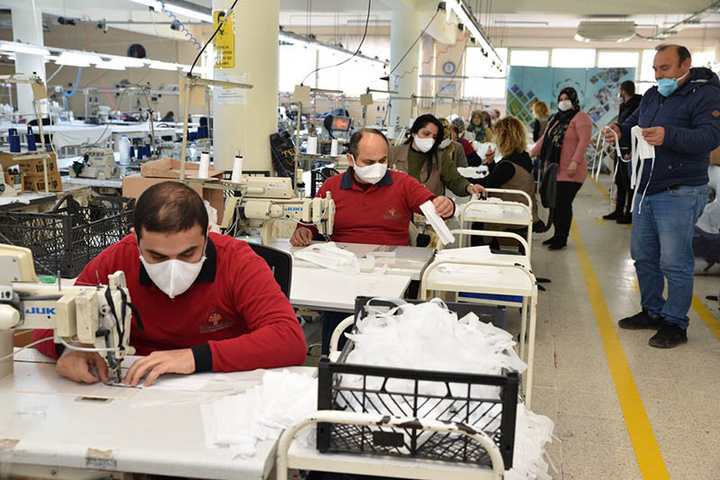 Kocaeli Sanayi Odasının sosyal Projesi olan Akmeşe yolu üzerindeki “Bizimköy Engelliler Üretim Merkezi”nde öncelikle sağlık çalışanlarına yönelik olmak üzere Koronavirüs(Covid-19)salgınından dolayı önemli ihtiyaç duyulan maske üretimini başlattı.