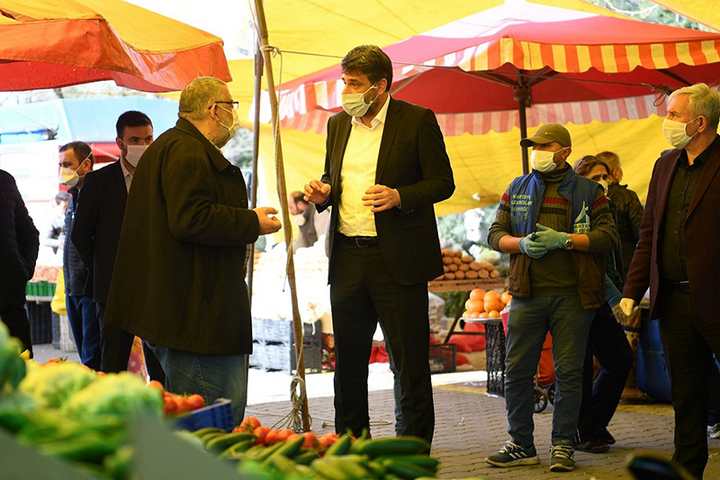 Kartepe Belediye Başkanı Av.M.Mustafa Kocaman, Ataevler Mahallesi’nde kurulan semt pazarında incelemelerde bulunurken, esnaflarla ve alış-verişini yapan Kartepelilerle sosyal mesafeye uyarak sohbet etti, istekleri dinledi. Başkan Kocaman, İç İşleri Bakanlığımız tarafından yayınlanan genelge eksiksiz bir şekilde Kartepe genelinde uygulanmaktadır açıklamasında bulundu.