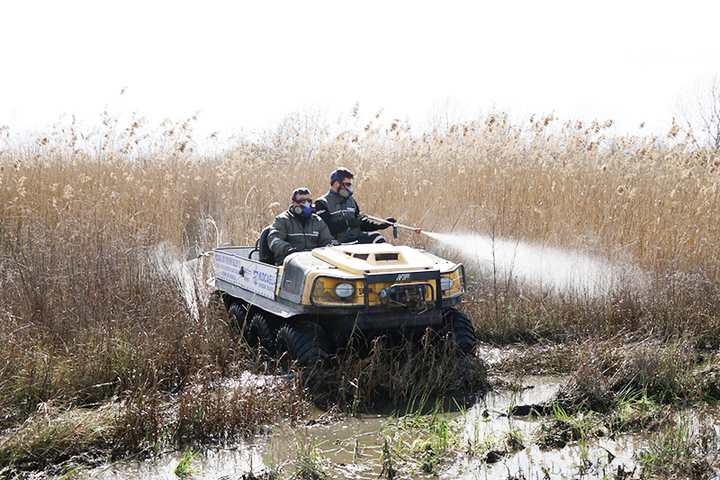 Sivrisineklerin üreyebilecekleri alanlarda çevre düzenlemeleri, sulak alan ve kanalların ıslahı, alt yapı sistemlerinde kontrolün sağlanması amacıyla da ilaçlama çalışmaları yapılıyor. 12 ilçede yapılan ilaçlama çalışmaları 20 araç, 1 adet Atv 8x8 amfibik araç, 57 uygulayıcı ve 5 kontrol mühendisi tarafından uygulanıyor. Sahada sivrisinek ağırlıklı karasinek, kemirgen ve diğer haşerelere karşı önleyici müdahale yapılıyor.