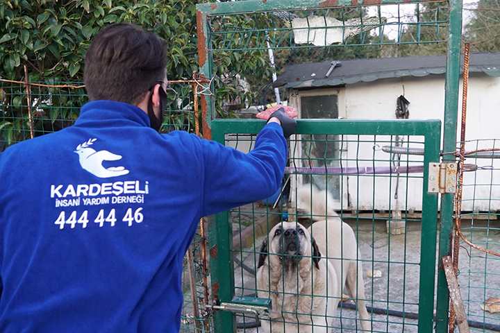 Kampanya kapsamında herkesten evinin önüne su yemek bırakmasını isteyen Kardeş Eli Derneği, gönüllüleri ile birlikte hayvanlar için seferber oldu