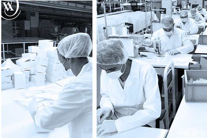 VAKKO, Türkiye’nin Covıd-19 salgını ile devam eden mücadelesinde sağlık çalışanlarının ihtiyaçlarını karşılamak üzere maske üretim kapasitesini artırıyor. Bu amaçla yeni bir yatırım yapan VAKKO, tam otomatik makineler ile sterilize koşullarda üretilen 3 milyon adet maskeyi T.C. Sağlık Bakanlığı’na teslim etmeye hazırlanıyor.