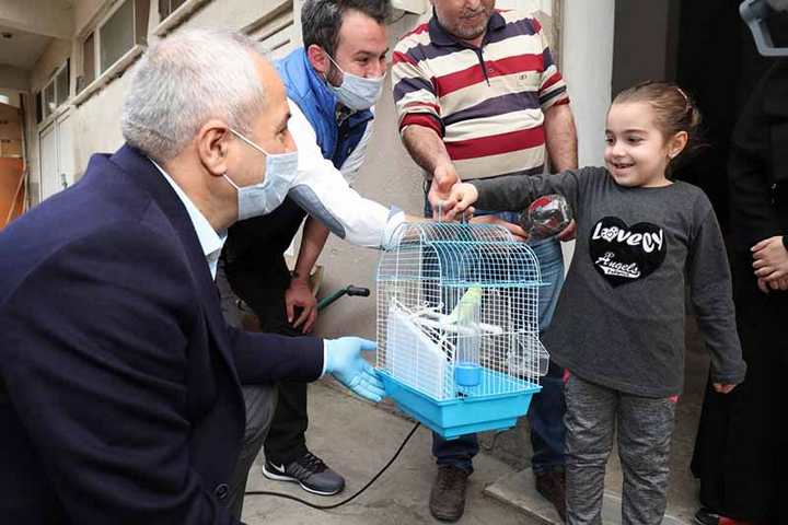 Kendisine sosyal medyadan ulaşarak evde bakmak için bir kuş isteyen minik Zeynep Yaren’i kırmayan Gebze Belediye Başkanı Zinnur Büyükgöz, muhabbet kuşunu kendisine hediye etti