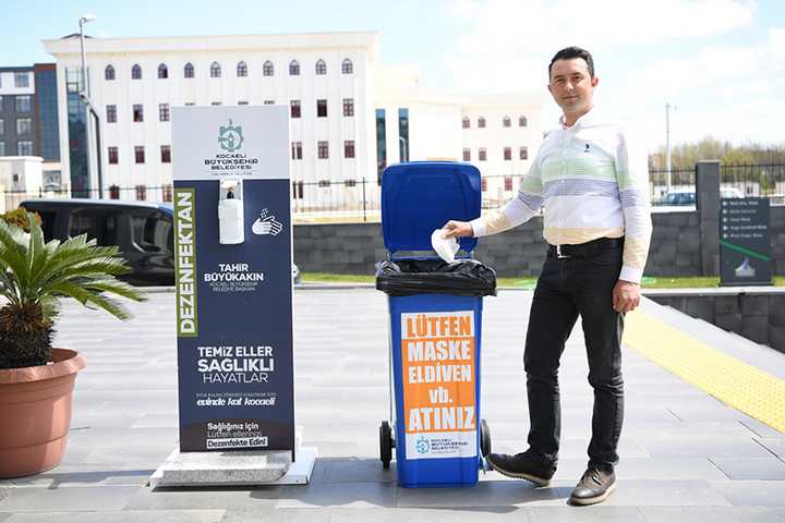 Temizlik İşleri Müdürlüğü’ne bağlı ekipler günlük olarak toplanacak atıkların halk sağlığına zarar vermeden yok edilmesi için çalışma başlattı. Bu kapsamda atık kutuları kamu kurumlarına, 3 polis kontrol noktasına, sağlık ocakları, kurulan Pazar alanlarına, halkın yoğun olduğu meydanlara yerleştirildi. Kartepe Belediyesi, vatandaşların maske, eldiven başta olmak üzere kişisel temizlik hijyen ürünlerinin o bölgelerde yer alan atık kutularına atarak duyarlı davranmaya davet etti.
