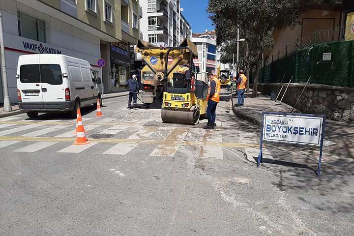 Kocaeli Büyükşehir Belediyesi Fen İşleri Daire Başkanlığı ekipleri Koronavirüs salgının olduğu bu dönemde çalışmalarını sosyal mesafeyi koruyarak sürdürüyor. Çalışmalar kapsamında İzmit Karabaş Mahallesi Leyla Atakan Caddesi’nde yol bakımı ve onarımı gerçekleştirildi.