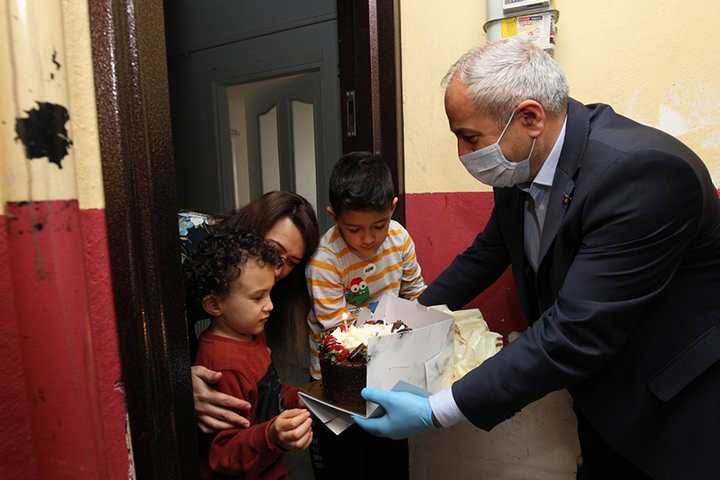 Otizmli minik Polat’a Başkan Büyükgöz’den doğum günü sürprizi. Gebze Belediye Başkanı Zinnur Büyükgöz, otizmli Polat Söylemez’i ziyaret ederek doğum gününü kutladı. 5 yaşındaki Polat Söylemez sürpriz karşısında oldukça sevindi. Sultan Orhan Mahallesi sakinlerinden Söylemez ailesini evlerinde ziyaret eden Başkan Büyükgöz’ün beraberinde getirdiği doğum günü pastasının mumlarını anne Pınar Söylemez, aile fertleri ve küçük Polat birlikte üfleyerek söndürdü. Doğum gününü kutladığı Polat’a beraberinde getirdiği sürpriz hediyeleri de veren Gebze Belediye Başkanı Zinnur Büyükgöz, “Bize sosyal medya üzerinden ulaşan Polat kardeşimizin ailesinin talebini yerine getirerek yeni yaşını birlikte kutladık. Virüs salgınından korunmak amacıyla evlerinde zaman geçiren çocuklarımızı zaman zaman evlerinde ziyaret ederek sürprizler yapıyoruz. Bugün Polat kardeşimize de sürpriz yaparak yeni yaşını doğum günü pastası ve hediyelerle kutladık. Rabbim tüm evlatlarımıza hayırlı ve uzun ömürler nasip eylesin inşallah. Korona salgınına karşı tedbirlerini alarak evlerinde kalan sağlıcakla kalan hemşerilerimize bir kez daha teşekkür ediyorum” ifadelerini kullandı. Anne Pınar Söylemez de ziyaretten ve sürpriz doğum gününden ötürü Başkan Büyükgöz’e teşekkür etti. Başkan Büyükgöz’den Polat’a Doğum günü Sürprizi