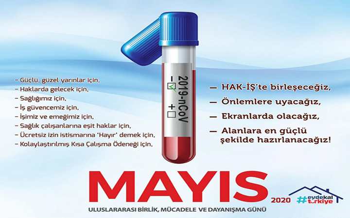 HAK-İŞ Konfederasyonu Kocaeli İl Başkanlığı tarafından 1 Mayıs Emek ve Dayanışma Günü için 30 Nisan 2020 Perşembe günü Saat:11.30’da İzmit Sabri Yalım Parkında HAK-İŞ 1 MAYIS BİLDİRİSİ okunacaktır.