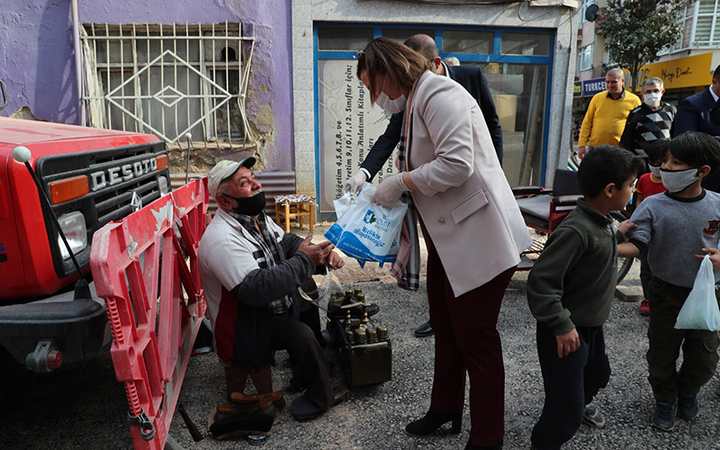 Koronavirüs ile mücadeleyi kent dayanışmasına dönüştüren İzmit Belediye Başkanı Av. Fatma Kaplan Hürriyet, gönüllü kadınlar tarafından üretilen sağlık kitlerini bu kez kent esnafına ulaştırmaya başladı