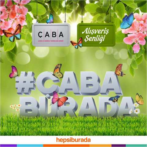 ÇABA Derneği Geleneksel Alışveriş Şenliği, 2 Mayıs itibarıyla Türkiye’nin lider e-ticaret platformu Hepsiburada’da “ÇabaBurada” adıyla açılacak mağazada gerçekleştirilecek. 35’ten fazla kategoride, 25 milyonu aşkın ürün çeşidiyle aylık 150 milyondan fazla ziyaretçinin ihtiyaçlarını en güvenli ve hızlı şekilde karşılamak için çalışan Türkiye’nin lider e-ticaret platformu Hepsiburada’da, ÇabaBurada’nın özel tasarımcı, marka ve ürünleri yıl sonuna kadar satışta olacak.