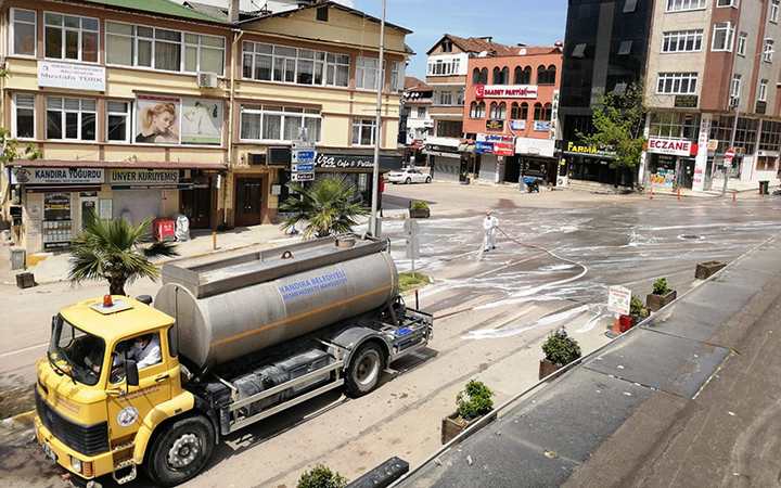Kandıra Belediyesi, koronavirüsle mücadele tedbirleri kapsamında Kandıra Belediye Başkanı Adnan Turan'ın talimatıyla, 7 gün 24 saat çalışmalarını sürdürüyor. 'Evde Kal' çağrısını yineleyen Kandıra Belediyesi, ortak kullanım alanlarında dezenfekte işlemlerini düzenli olarak yerine getirirken vatandaşların sağlığı için cadde ve sokaklarda yıkama ve temizlik çalışmalarına da ağırlık verdi. Bir yandan vatandaşların yoğun olarak kullandığı alanları düzenli olarak dezenfekte eden Kandıra Belediyesi Temizlik İşleri Ekipleri bir yandan da cadde ve sokaklarda titiz bir çalışma yürütüyor.
