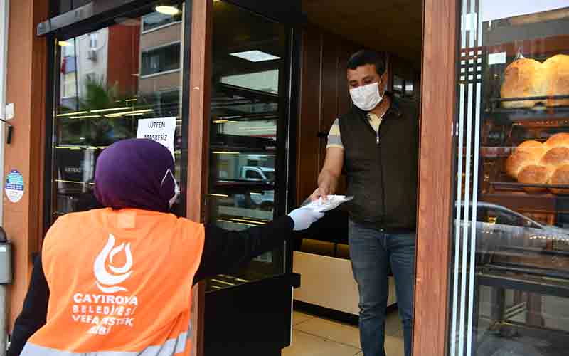 Esnafları önemseyen ve onlarla her zaman iç içe olan Çayırova Belediye Başkanı Bünyamin Çiftçi, ilçede bulunan 1600 esnafa 8 bin maske dağıttı. Sabahın erken saatlerinde sahaya inen vefa destek ekipleri ilçede bulunan esnafları tek tek gezerek maske verdi. Bugüne kadar 350 binin üzerinde maske dağıtan Çayırova Belediyesi, ilçede maske almayan kişi bırakmamak için dağıtıma devam ediyor. Esnafları bugüne kadar 8 defa dezenfekte eden belediye ekipleri, virüsten korunması için tüm esnaflara tek tek maske dağıttı.