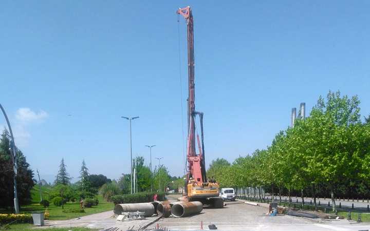 Akçaray tramvay hattı üzerinde bulunan Sekapark Tramvay Durağı’nın yanına yapılacak olan yaya üst geçidi için ilk kazık çakıldı