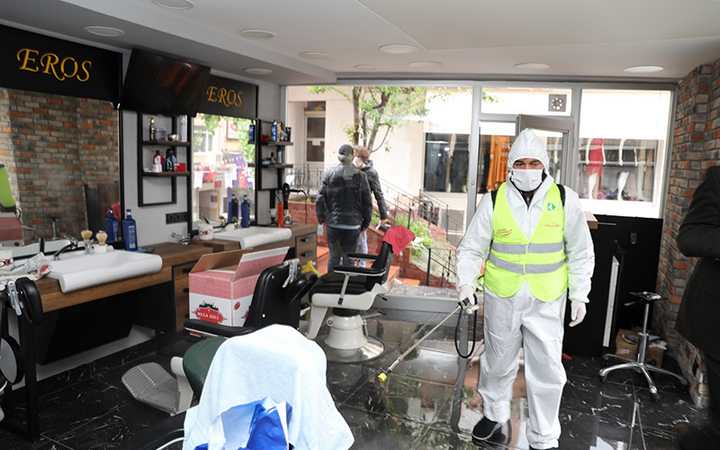 İzmit Belediyesi, 11 Mayıs itibariyle açılacak olan berber ve kuaför salonlarında dezenfekte ve ilaçlama çalışmalarına başladı