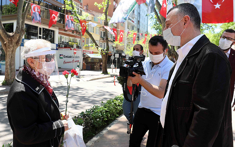 Marmara Belediyeler Birliği ve Kocaeli Büyükşehir Belediye Başkanı Doç. Dr. Tahir Büyükakın, 10 Mayıs Anneler Günü nedeniyle İzmit yürüyüş yolunda sokağa çıkma kısıtlaması belirli saatler arasında kalkan 65 yaş üzeri kadınların Anneler Günü’nü kutladı. Annelere karanfil hediye eden ve sohbet eden Başkan Büyükakın, dışarıya çıkan 65 yaş üstü vatandaşların bir isteği olup olmadıklarını sordu. “Biz Kocaeli’de annelerimizi hiç unutmadık” diyen Başkan Büyükakın’a, bu ince davranışından dolayı anneler çok teşekkür etti. “Sizleri sağlıklı ve her daim bizim yanı başımızda görmek bize mutluluk veriyor” diyen Başkan Büyükakın, “Koronavirüs nedeniyle uzun bir zamandır evlerinden çıkamayan büyüklerimizin bugün mutlu görmek bizlere enerji verdi” açıklamasını yaptı.