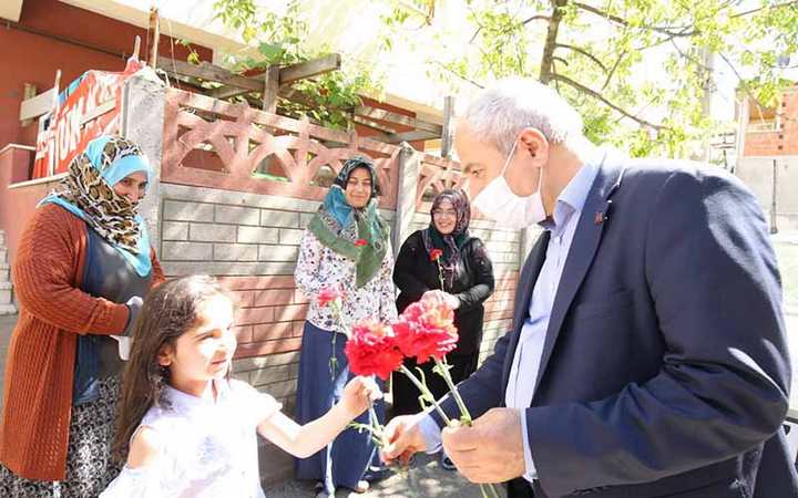 Başkan Büyükgöz’den Gebzeli annelere Anneler Günü ziyaretleri. Anneler Günü’nde, sokağa çıkma kısıtlamasına verilen 4 saatlik arayı kent meydanında eşleriyle birlikte kısa yürüyüş ve dinlenerek geçiren 65 yaş üstü hanımlara karanfil takdim eden Başkan Büyükgöz, mahalle ziyaretleri de gerçekleştirdi. Hafta sonu uygulanan sokağa çıkma kısıtlamasına denk gelen Anneler Günü’nde Gaziler, Barış, Cumhuriyet ve Arapçeşme mahallelerinde belirlenen adreslere ev ziyaretleri yapan Belediye Başkanı Zinnur Büyükgöz, hanımların Anneler Günü’nü tebrik etti, çocuklara da çeşitli hediyeler verdi. “Annelerimiz sadece ailesini değil, bütün toplumu sevgiyle yoğuran, özenle yetiştirdikleri çocuklarıyla geleceğimizi şekillendiren en değerli varlıklarımızdır” diyen Başkan Büyükgöz, “Hayatımız boyunca bize güven ve destek veren, geleceğe umutla bakmamızı sağlayan tüm annelerimizin Anneler Günü’nü kutluyorum” ifadelerini kullandı. Ziyaretlerde çocuklarla da bir süre sohbet eden Başkan Büyükgöz, çeşitli hediyeler takdim ederek gönüllerini aldı.