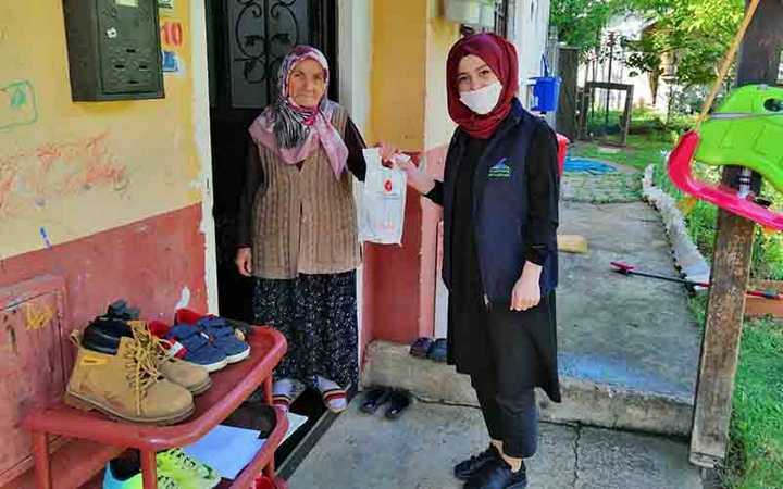 'Türkiye Cumhuriyeti Cumhurbaşkanlığı' yazılı poşetler içerisinde maske, kolonya ve Cumhurbaşkanı Recep Tayyip Erdoğan'ın mektubu yer aldı. Covid-19 tedbirleri kapsamında 21 Mart tarihinden bu yana sokağa çıkamayan 65 yaş üstü yaşlılara 4 saatlik sokağa çıkma izni öncesinde Alo Evlat ekipleri paketleri teslim etmiş oldular.