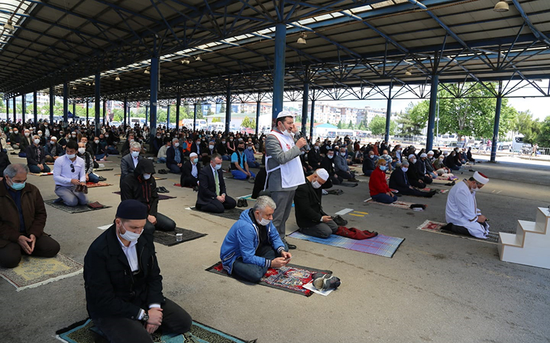 Sosyal mesafenin korunması için Cuma Namazı camilerin dışarısında kılındı. Cuma namazı için Büyükşehir Belediyesi, ilçe belediyeleri ve müftülükler tarafından şerit ve çizgiler çizildi. Büyükşehir Belediyesi ayrıca gerçekleştirdiği planlama kapsamında camilerin girişlerine ayaktan basmalı dezenfektanlar koydu.