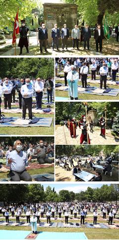 Pandemiyle mücadele nedeniyle ara verilen cemaatle Cuma namazı 74 gün sonra; İstanbul’un 567. Yıldönümünde 29 Mayıs Cuma günü Fatih Sultan Mehmet’in vefat ettiği Tarihi Hünkar Çayırında protokol ve vatandaşların katılımıyla birlikte eda edildi