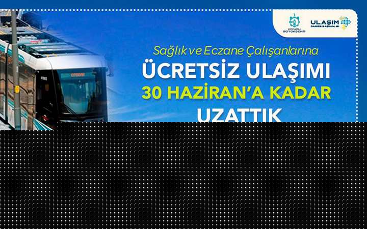 Koronavirüs salgının başladığı günden bu yana Kocaeli’de yaşayan vatandaşların her alanda sosyal yardımlar ile yanında olan Kocaeli Büyükşehir Belediyesi, sağlık ve eczane çalışanlarına sunduğu ücretsiz ulaşım süresini uzatıyor. Büyükşehir Belediye Başkanı Doç. Dr. Tahir Büyükakın’ın talimatı ile virüs salgınına karşı canlarını ortaya koyan sağlık ve eczane çalışanlarına sunulan ücretsiz toplu taşıma hizmeti 30 Haziran 2020 tarihine kadar uzatıldı.