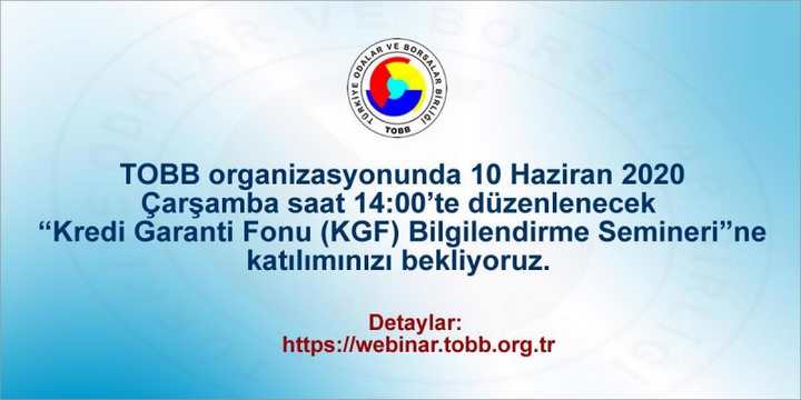 Gebze ticaret odası,TOBB organizasyonunda 10.06.2020 Çarşamba günü Saat: 14:00'da "Kredi Garanti Fonu (KGF) Bilgilendirme Semineri" gerçekleştirecek