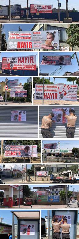 Aşıroğlu-Atatürk cad. Kesişimi, İstasyon Caddesi Girişi, Dr.Zeki Acar-Reşat Nuri Güntekin Caddesi Kesişim, Bayramoğlu Kavşağı, Farabi Hastanesi önü, İstasyon Caddesi, Mezarlık Önü, Darıca Kapı Giriş, Darıca Park AVM önü gibi bir çok farklı noktanın yanı sıra umuma açık yerlere ve halkın yoğun olarak bulunduğu; Restaurant, Büfe, Kahvehane, Kafe, Duraklar vb. yerlere de afiş ve pankartlar asıldı.