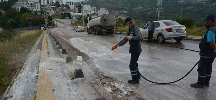Yoğun yağışla birlikte hemen harekete geçen ekipler mahallelerin yollarında oluşan taş birikintilerini iş makineleriyle kaldırdı. Ekipler daha sonra yolları tazyikli ve ilaçlı suyla yıkayarak dezenfekte etti. Sürücülerin sorun yaşamaması için çalışmalarını yoğun bir şekilde sürdüren ekipler yolları kısa sürede kullanıma hazır hale geldi.