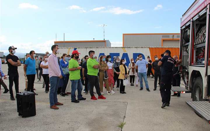 Bu ayın afet hazırlık teması olan yangın konusunda Kocaeli AFAD eğitim uzmanlarından Orhan Turan’ın verdiği teorik eğitim sonrası Büyükşehir Belediyesi İtfaiyesi uzmanlarınca itfaiye ile ilgili tanıtım yapıldı ve yangın söndürme tatbikatı gerçekleştirildi.