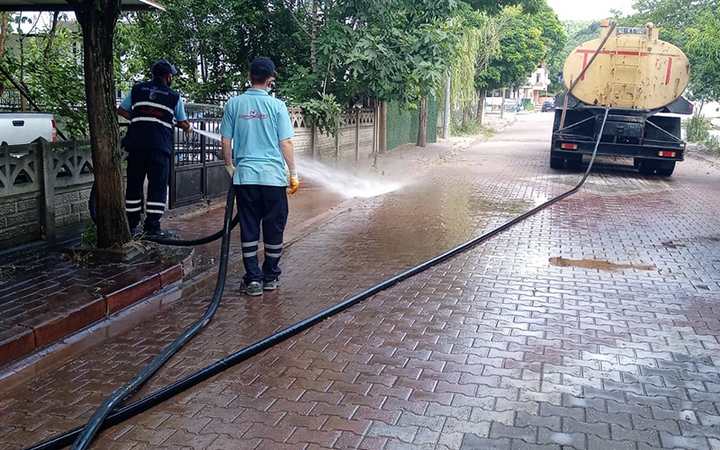 Mart ayından beri koronavirüs salgınına karşı yıkama ve dezenfekte çalışmalarını sürdüren İzmit Belediyesi Temizlik İşleri Müdürlüğü ekipleri, yeni normalleşme sürecinde de mahallelerdeki dezenfekte çalışmalarına hız kesmeden devam ediyor