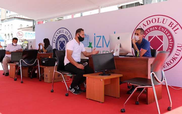 İzmit Belediyesi ve İstanbul Aydın Üniversitesi işbirliği ile Belsa Plaza önünde kurulan stantta, üniversite sınavlarına girip tercih yapmaya hak kazanan öğrencilere tercihleri konusunda yardımcı olunuyor. Stantta İzmit Belediyesi ile İstanbul Aydın Üniversitesinden yetkililer, öğrencilere üniversiteler ve bölümleri hakkında bilgi verirken öğrencilerin sorularını da yanıtlıyor.