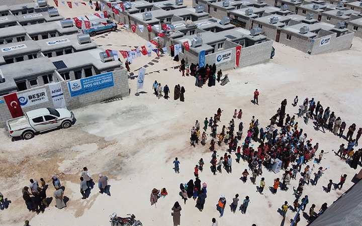 Yapılan tören sonrası evlere yerleştirilen ailelere gıda ve ev eşyası desteği de sağlayan Beşir Derneği, projenin tamamını nihayete erdirmek için bağışçılarından destek bekliyor. Toplamda 7.500 kişinin barınabileceği ve 1500 evden oluşan, içerisinde camisi, mescidi ve sağlık ocağı olan Projeye katkı sunmak için hemen İDLİB Yazıp 4012’ye SMS göndererek 20 TL katkıda bulunabilirsiniz.