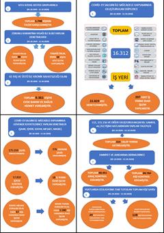 - COVİD-19 salgını ile mücadele kapsamında oluşturulan ekiplerce, toplam 16.312 iş yeri, 22.829 kez denetlenmiş, 397 adet iş yerine kurallara uymaması nedeniyle idari işlem yapılmış,