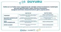 Özel halk otobüsleri saat 21.00’dan sonraki sefer saatlilerinde kısıtlama yapılacak belirtilen sefer saatlerine göre çalışacak. Özel halk otobüsleri hafta sonu hizmet vermeyecek.