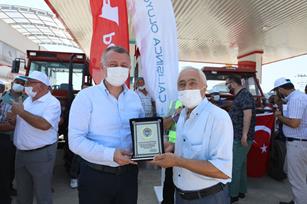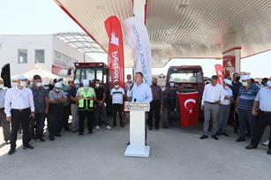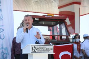 Konuşmalardan sonra Kocaeli Büyükşehir Belediyesi Başkanı Doç. Dr. Tahir Büyükakın çiftçilere verilecek ilk akaryakıtı kendi elleri ile traktöre doldurdu.