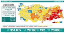 Türkiye'de son 24 saatte 28 bin 168 kişinin testi pozitif çıktı, 242 kişi ise yaşamını yitirdi. Bakan Koca sosyal medya hesabından yaptığı açıklamada da, "Türkiye genelinde, 18 yaş ve üzeri nüfusta iki doz aşı olma oranımız yüzde 68,91. Sadece 7 ilde bu oran yüzde 75’in üzerinde. İki doz aşıda, il bazında en düşük oranımızsa yüzde 42,5. İlk doz başlangıç, ikinci dozla sonuç almaya başlıyoruz. Covid-19 tablosuna karşı aşılarımızı hemen yaptıralım" ifadelerine yer verdi.